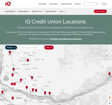 As part of its website redesign, iQ Credit Union trusted SmartBug Media™ to create a new branch finder that emphasized UX and instantly delivered the information customers were seeking.