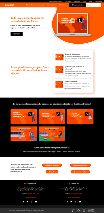 We created a page that includes all the videos needed to explain the admission process of the Anahuac University. We focused on the visual and interactive content over text on the page.