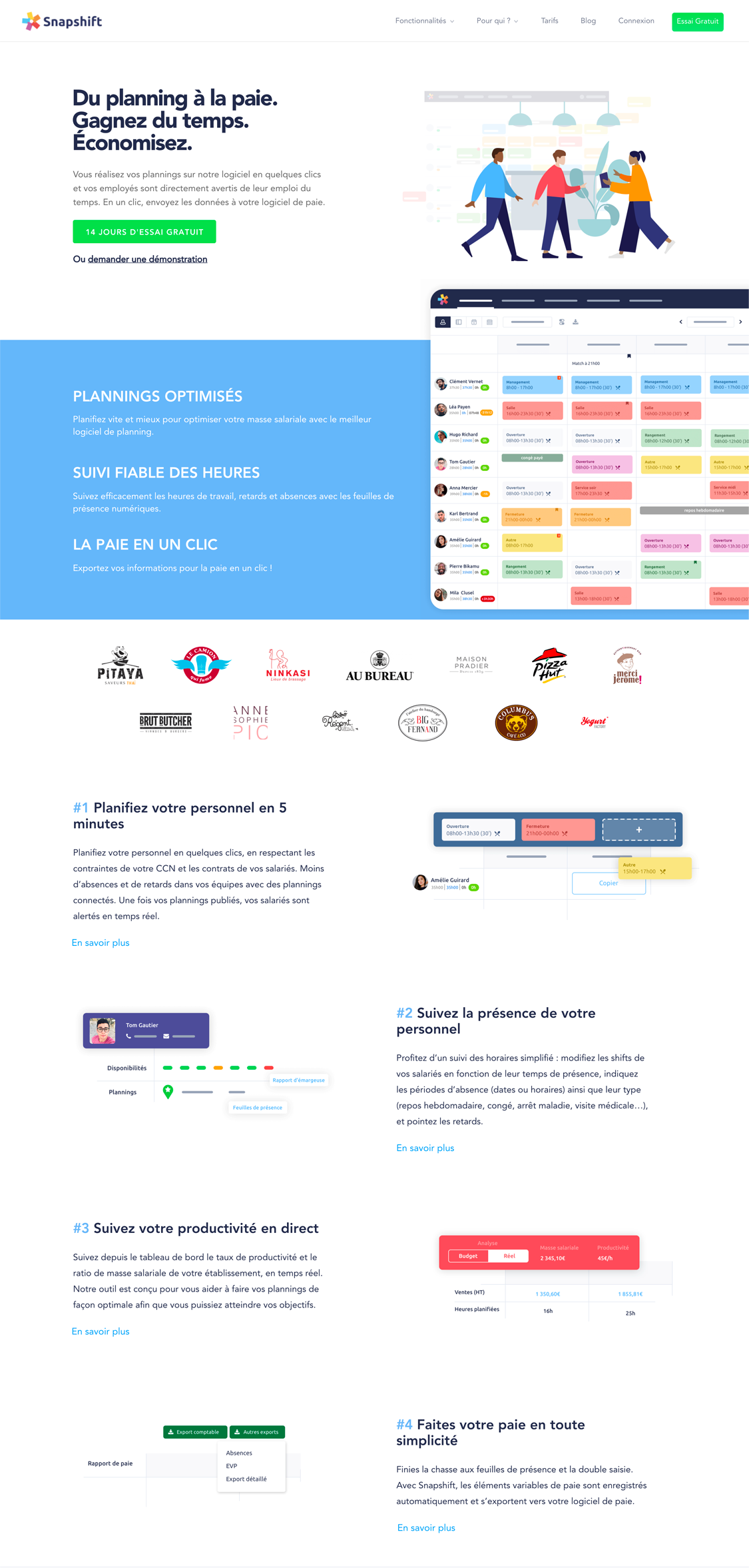 The main project was to build an attractive website optimized for lead generation. Snapshift wanted a rebranding and new pages to attract new sectors. At first, they were only targeting restaurants and hotels. So we created new templates with HubSpot Content Hub and added animations in order to make a more appealing website.