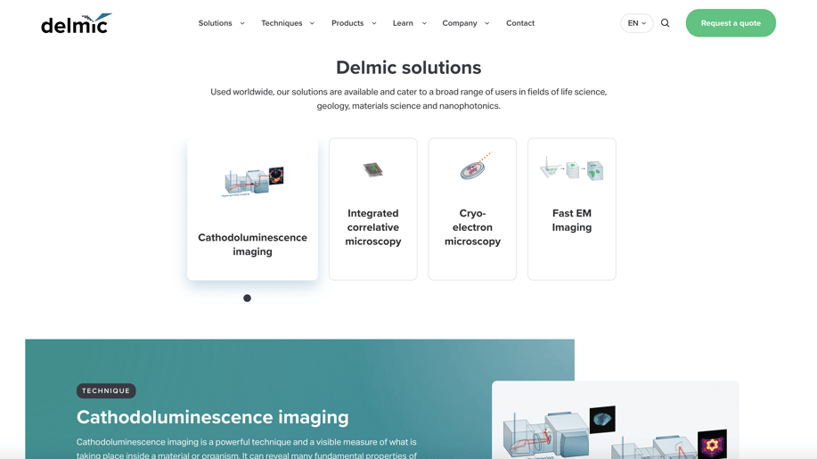 Delmic is a high-tech company based in the Netherlands that develops powerful and user-friendly solutions for light and electron microscopy. They desired a new website on CMS Hub to improve their online customer journey, storyline and conversion.