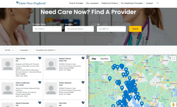 Developed a HubDB database of doctors and a search capability to find them by category and location.