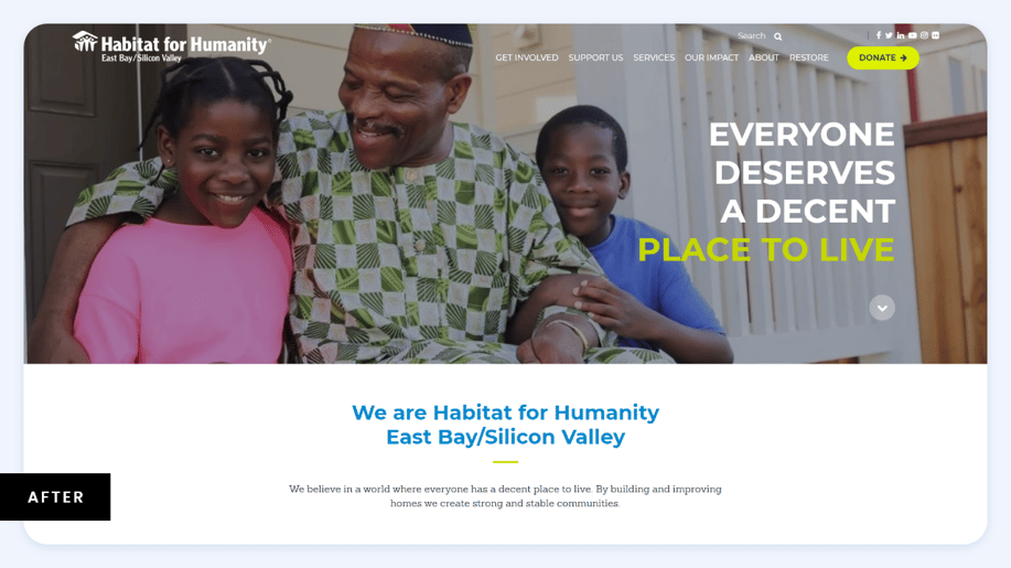 Habitat for Humanity EBSV had an outdated website with poor navigation, uninspiring content, and engagement that prevented them from the infrastructure they needed to market to their different audiences properly.