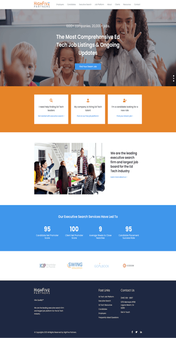 New HubSpot website created from scratch for ed tech professional platform. As there was no previous site, we created the design and content and created a platform that served as a connection between job seekers and employers in the ed tech space.