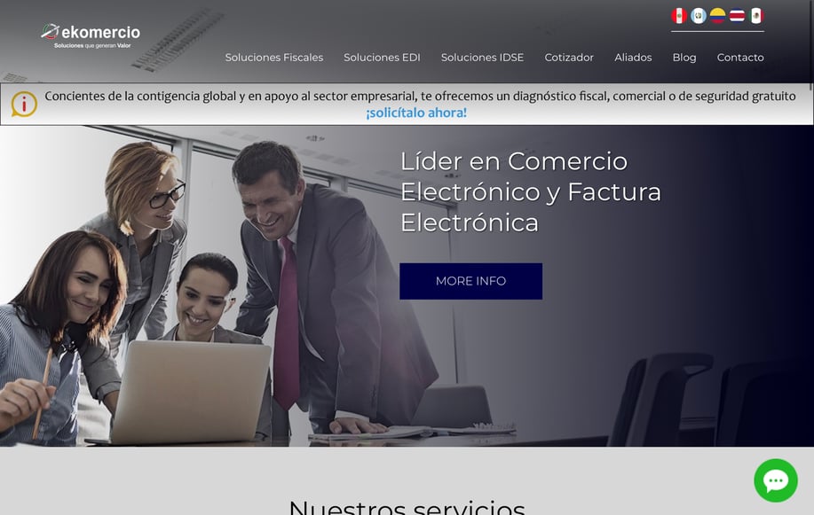 The development of the website is focused on expanding into new markets and gaining greater international recognition. The site consists of services offered to Latin America, with informative content directed to each country and explanations of each service. The site also allows for direct communication through the customer service center, and also includes illustrations designed with the business world in mind.