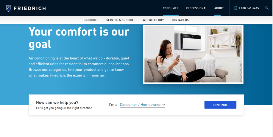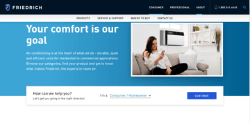 Friedrich's website was redesigned on the HubSpot Content Hub with a more modern design, and the ability for the users to self select their persona (out of 6) which sends them down the correct buyer's journey. The site includes product pages, dynamic content stored in HubDB, and a Dealer Locator.