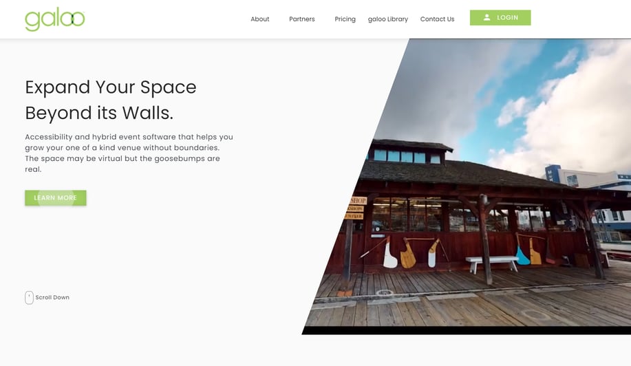 Create an engaging website for Galoo that would also provide data on who was visiting the website for the sales team. The software is designed for high facilities to extend their Matterport scans to create a virtual hybrid event option.