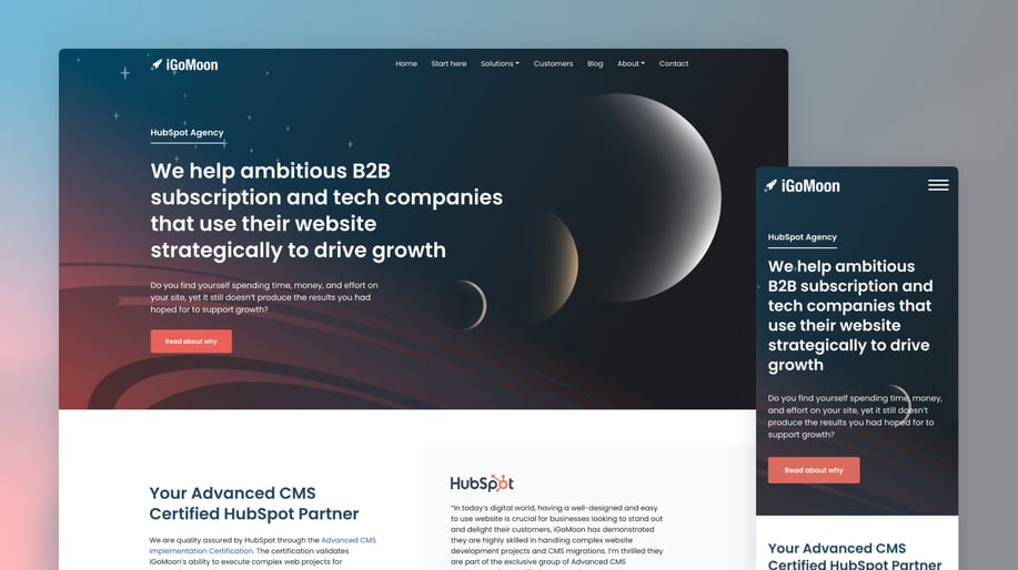 iGoMoon is a HubSpot partner agency that helps ambitious B2B subscription and tech companies use their website strategically to drive growth. We used HubSpot's CMS Hub to power our website overhaul and rebrand with this fresh redesign.