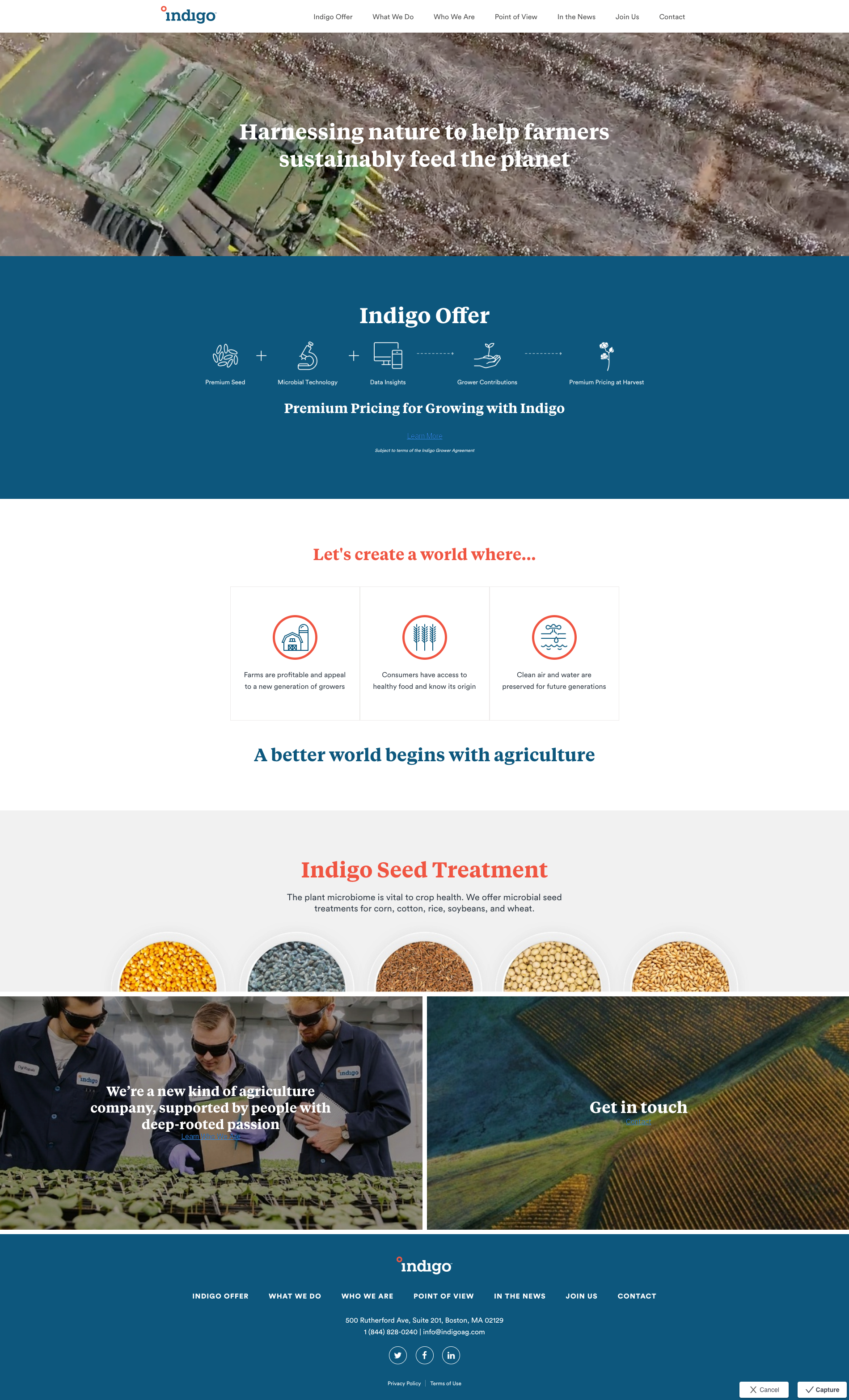 Indigo Ag sought to improve the quality of its website and online presence. This started with a new website design with a ton of new pages to showcase their new offerings.