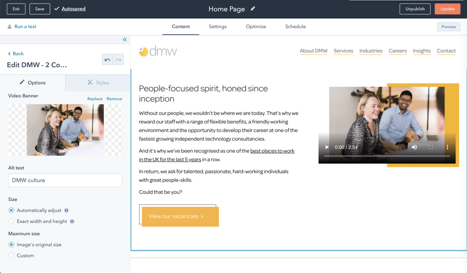 The solution is a modular approach to ensure maximum flexibility to build the pages. The modular approach also allowed the DMW Group to continue building pages after the launch of the revamped website.