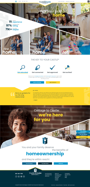 Castle & Cooke mortgage came to Revenue River for a website redesign. But through discovery, we identified a major opportunity to help streamline business processes as well. The website needed to increase lead gen and overall engagement. Additionally, the team was managing their locations and loan officers in a scattered framework of a disconnected website, database, and even excel files.