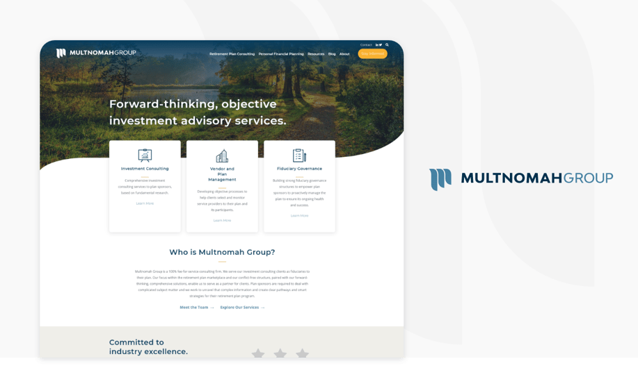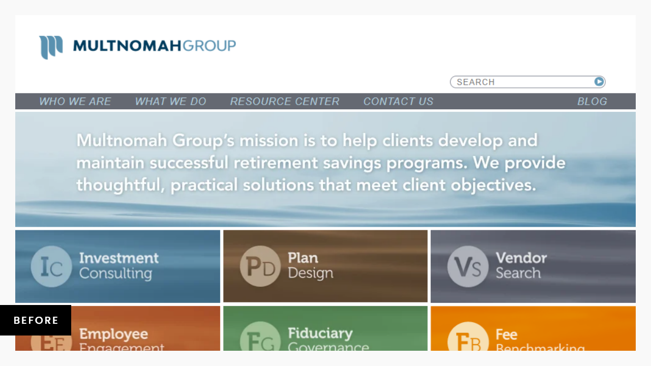 Multnomah Group came to us with several issues to resolve, including clunky navigation, poor internal search, hard to edit templates, lack of premium content, and a design that felt "too small" for the national company.