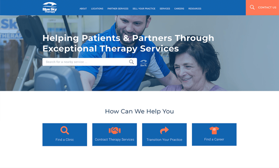 New website for Blue Sky Therapy. This project included flexible modules to make the site easily editable by the client. We optimized this website for user experience, simplifying navigation and the lead journey.