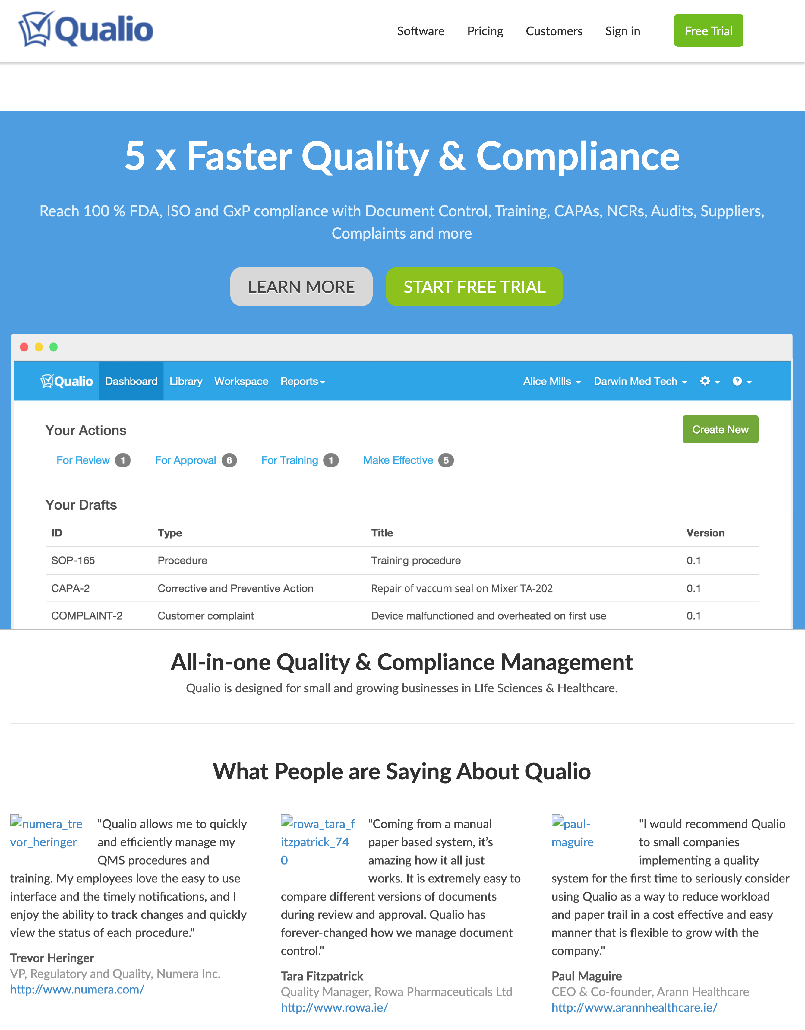 Qualio: Life Sciences Compliance Platform - QMS Software