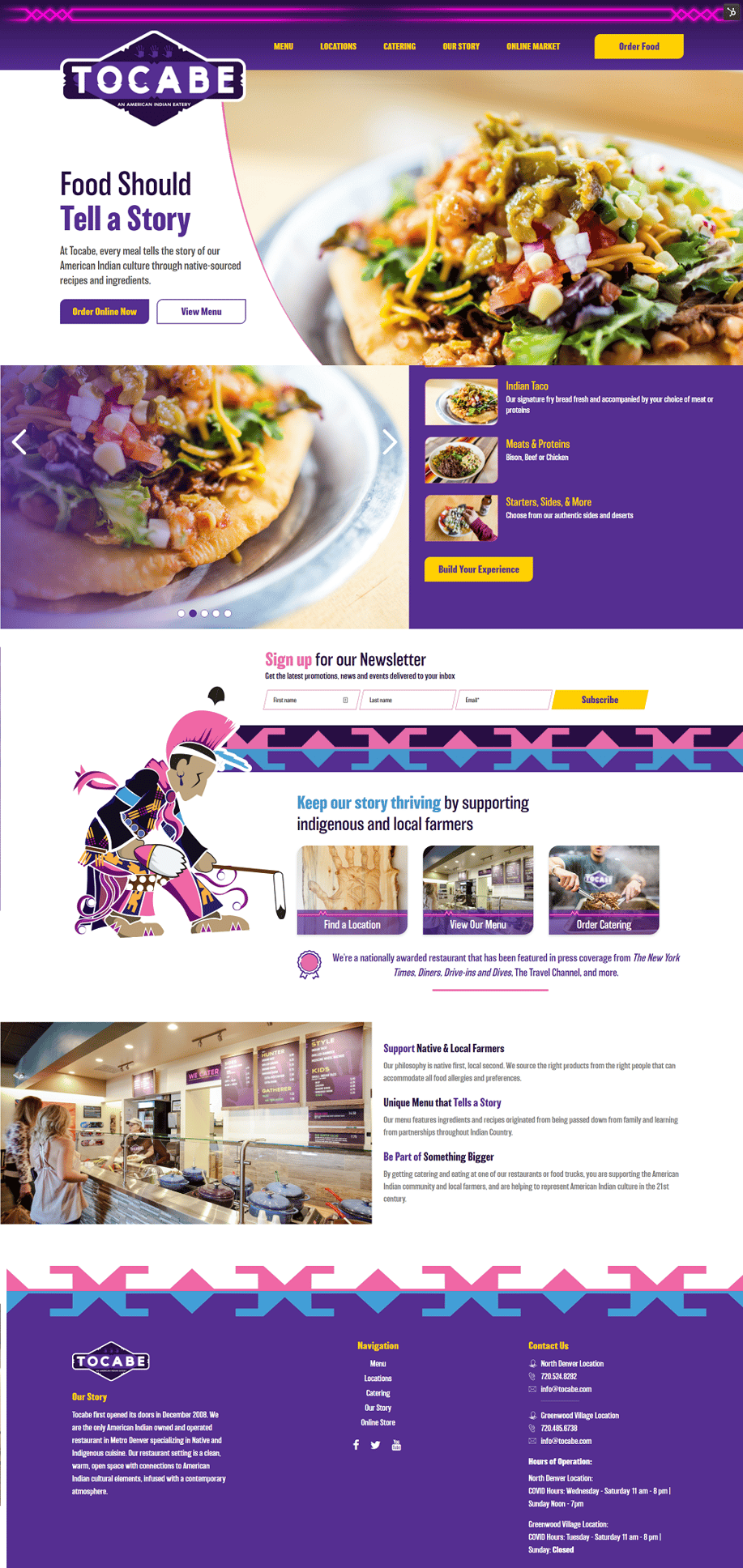 The project consisted of a ground-up website redesign on to the HubSpot Content Hub platform. We went through full strategy and creative to come up with strategic conversion paths that highlighted their online ordering and catering services. Additionally, we developed an online pantry with Shopify and integrated the two platforms for full visibility and deep sales analytics. Through these efforts, we not only helped Tocabe stay afloat, but thrive during an unprecedented time with the the Covid pandemic.