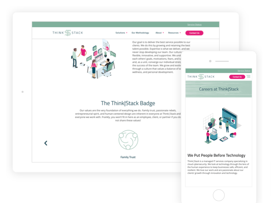 Think|Stack approached SmartBug Media® to develop a website that brought its brand to life through custom illustrations, intuitive design, and streamlined copy to better showcase its services and demonstrate its unique, trust-driven partnership style. Republished with fresh custom illustrations, a remapped website structure, and updated web copy, Think|Stack is better able to speak to its target customers and explain its wide range of technology services.