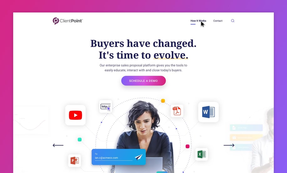 ClientPoint needed a website template that spoke to Sales management users looking for clear and customizable proposal solutions. With bold design and animations, this new site is fast, engaging, and easy to understand.