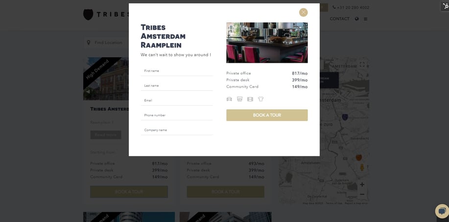 For Tribes Inspiring Workplaces, we integrated SalesForce with HubSpot’s HubDB and built several website modules to work for multiple languages to allow potential coworking customers to see pricing of offices and desks in near real time.