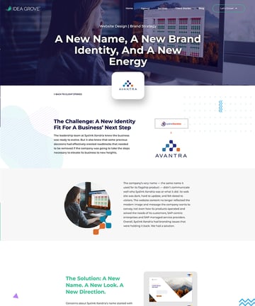 Idea Grove, a unified PR and marketing agency, underwent a brand refresh including a new website powered by Content Hub. We used our trust-centered web design philosophy, which operates on a simple principle: If visitors don’t believe you, nothing else matters. This focus on trust is built into our DNA as an agency with roots in public relations and thought leadership marketing. The goal was to incorporate the voice of our clients to tell our story and describe the services we offer.
